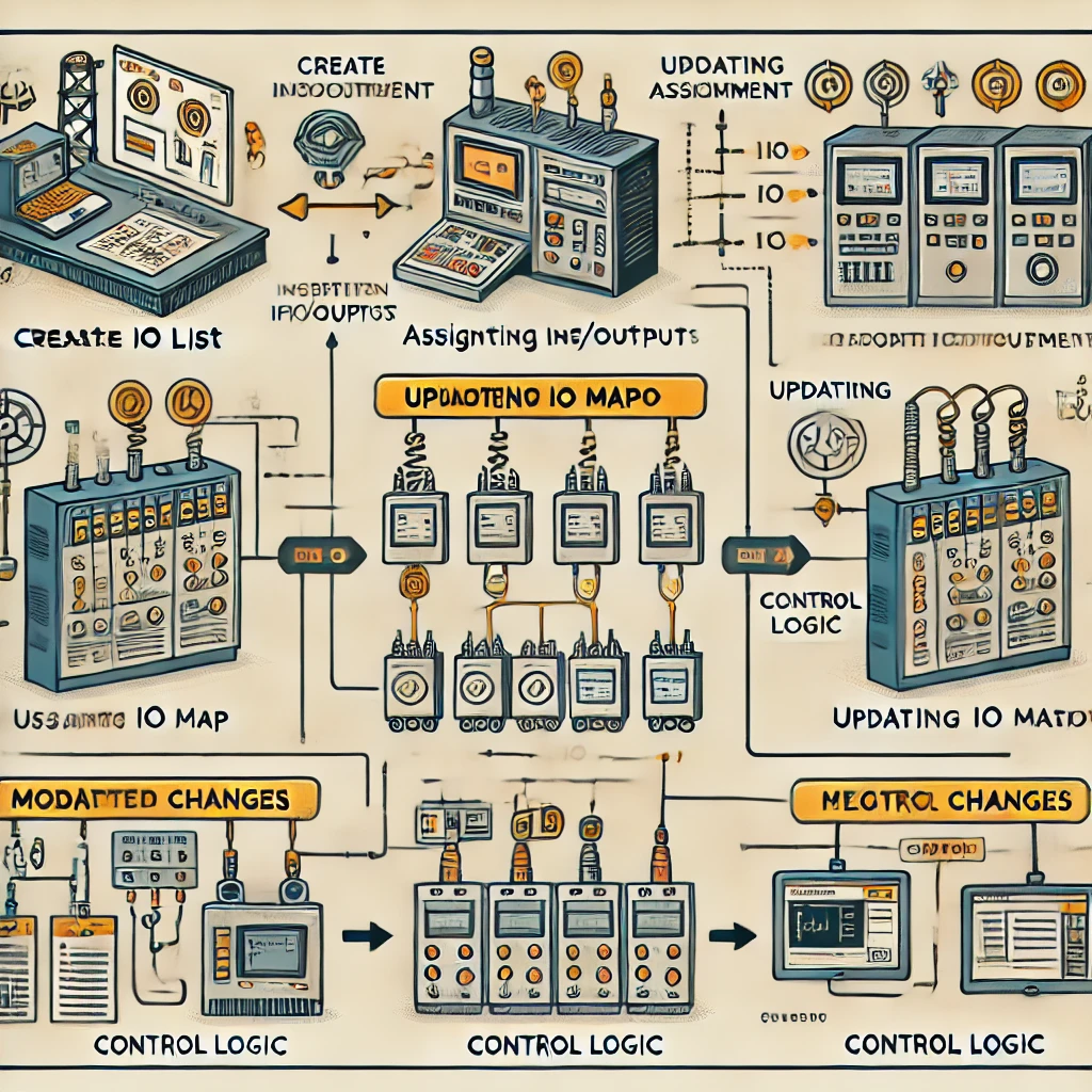 예를 들어, 새로 추가된 센서의 신호를 PLC(프로그래머블 로직 컨트롤러)에 할당하고, 그에 맞게 IO LIST와 IO MAP을 업데이트합니다.